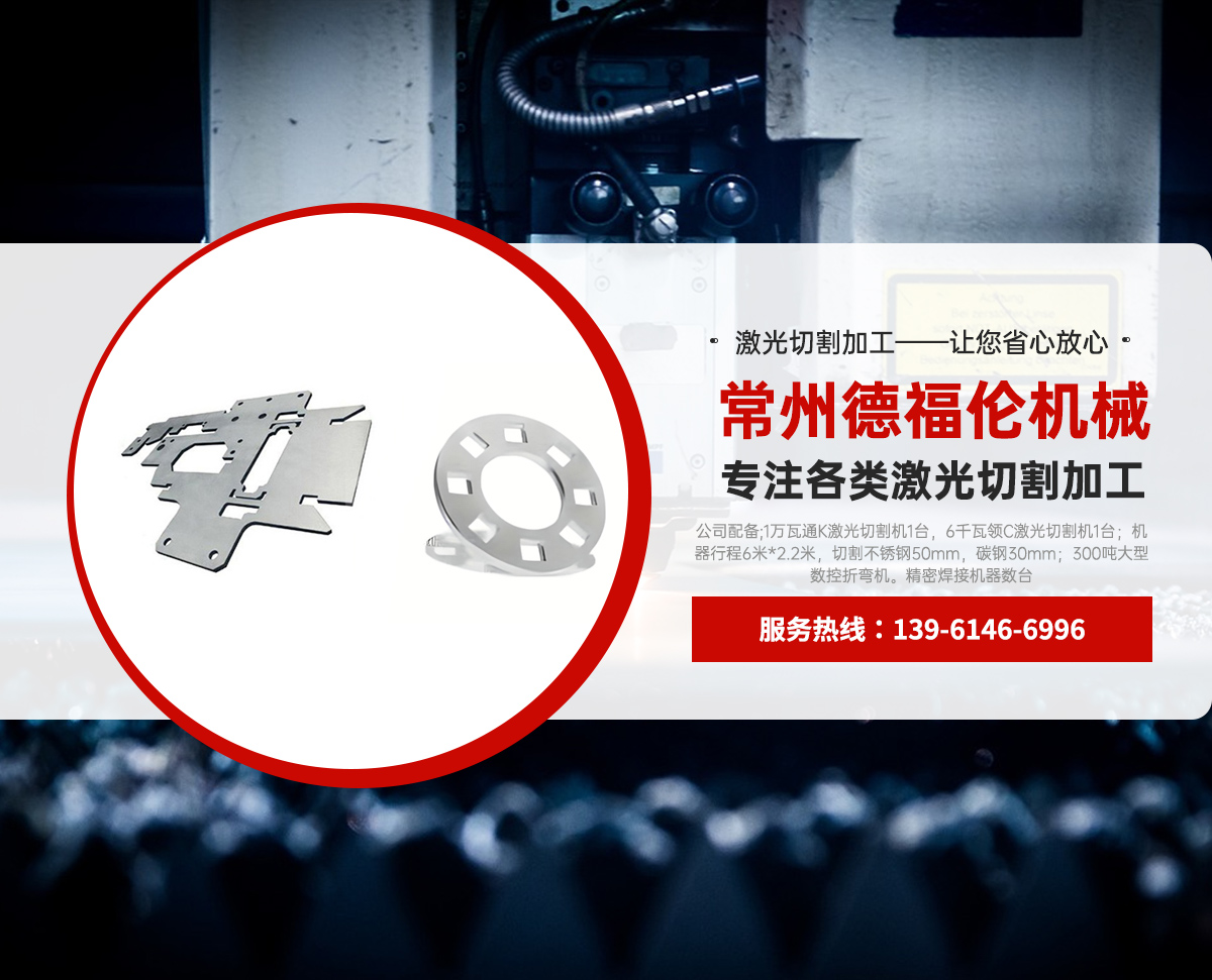 常州德福倫機械有限公司成立于2014年12月19號,位于江蘇省常州市武進區遙觀鎮建農村劍童路56號西門;公司配備;1萬瓦通K激光切割機1臺,6千瓦領C激光切割機1臺;機器行程6米*2.2米,切割不銹鋼50mm,碳鋼30mm;300噸大型數控折彎機。精密焊接機器數臺。本公司可以承激光切割加工件、,精密折彎件、精密鈑金、專營配套的各類鐵板,不銹鋼板。長期積累的加工經驗,加上形成的質量管理體系和計劃管理程序,使我們公司的加工能力大大提高,滿足客戶所需,是我們公司的目標!公司奉行“以誠待人,服務為上,價格滿意”的宗旨。歡迎各位領導;老總前來洽談合作!